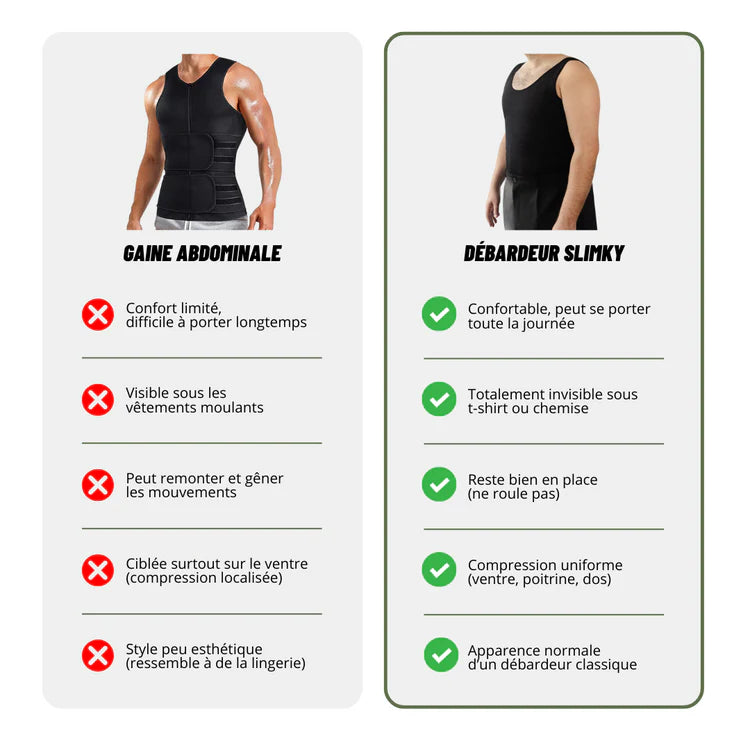 Bien plus qu’un simple vêtement, SLIMKY associe un tissu gainant innovant (83% Spandex, 17% Nylon) à des bandes de maintien intégrées qui vous aident à redresser la posture tout en aplatissant le ventre.