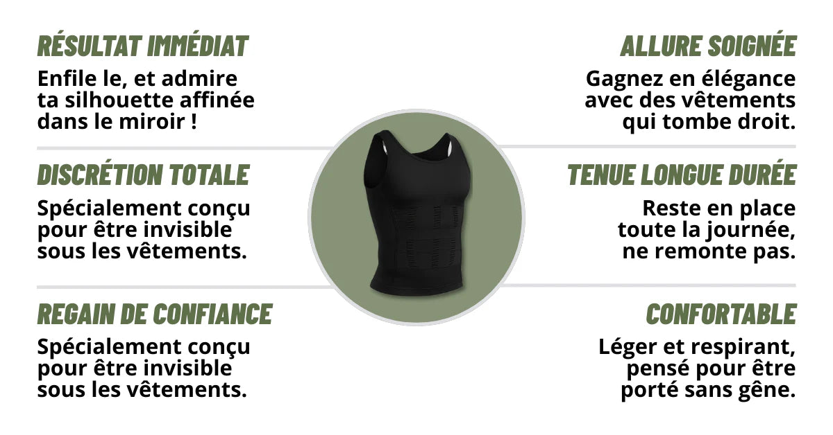 Résultat : moins de bourrelets, un torse plus ferme, une silhouette affinée immédiatement – sans effort.